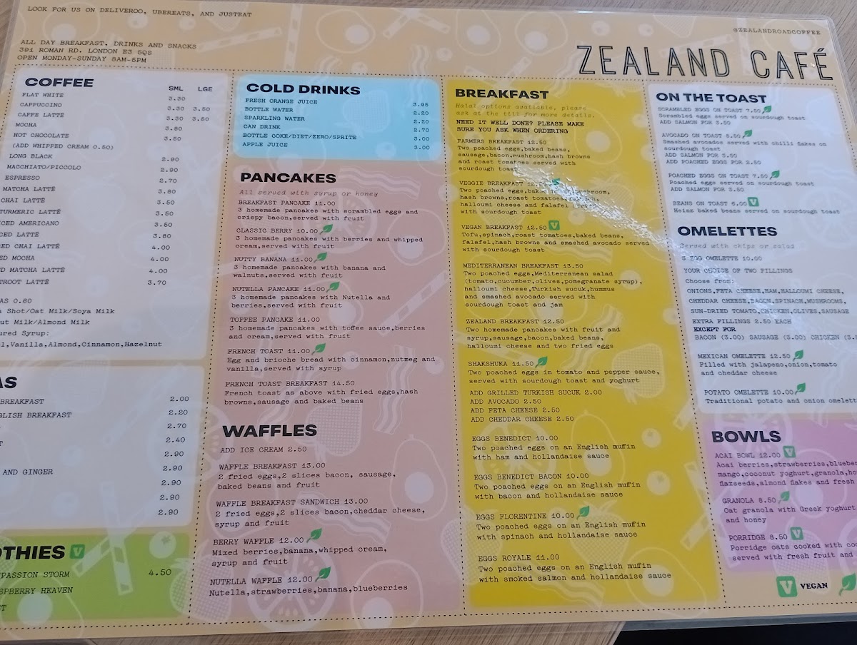 Overall, Zealand Cafe’s menu offers a fantastic balance of comfort food and healthy choices, complemented by a welcoming atmosphere. For anyone in the Bow area, it's undoubtedly worth a visit for both the food and the friendly vibe it exudes.